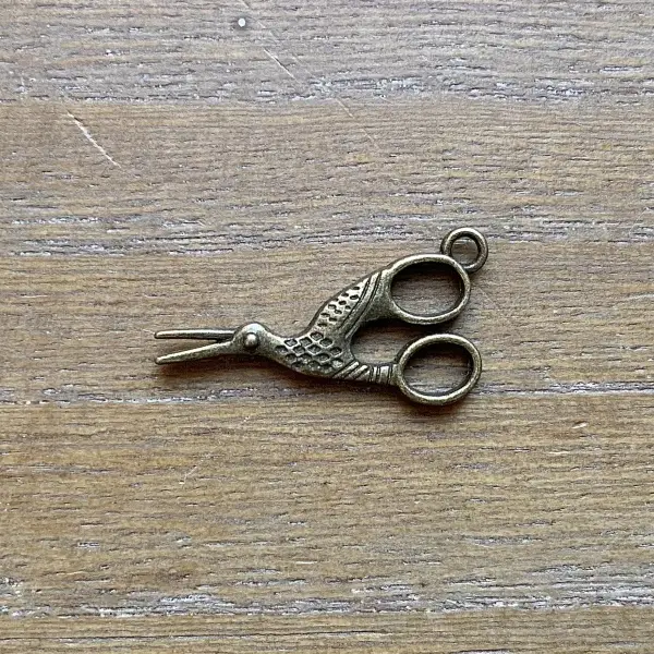 手芸モチーフ アンティークゴールド チャーム コウノトリのハサミ アンティークゴールド 手芸モチーフ 2024.11.09 小さいけれど立体的なコウノトリハサミチャームです。 [詳 細]裏あり 立体的なタイプです。[大きさ]幅約25mm